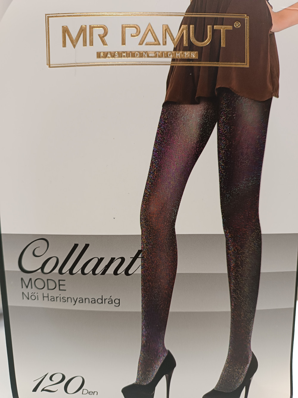 120Den -es színes csillogó szálakkal átszőtt harisnyanadrág. Méret nélküli.